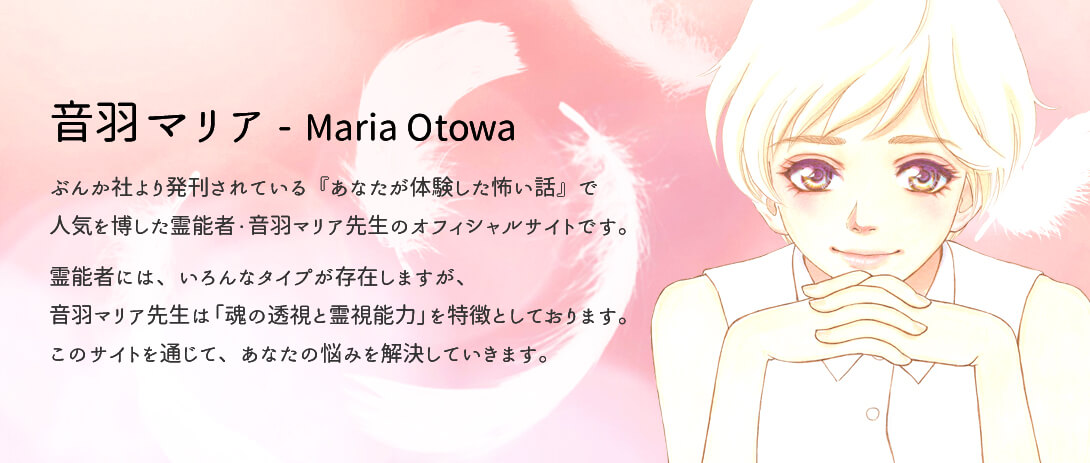 音羽マリア先生は霊能者として、その暗闇を見つけ出し、問題を解決していく使命を与えられた者として、皆さんの悩みに向き合います。これは巷に溢れる占いのようなものではありません。むしろ、占いなどの統計学では 解決されない、あなただけの必要なメッセージをお届けします。